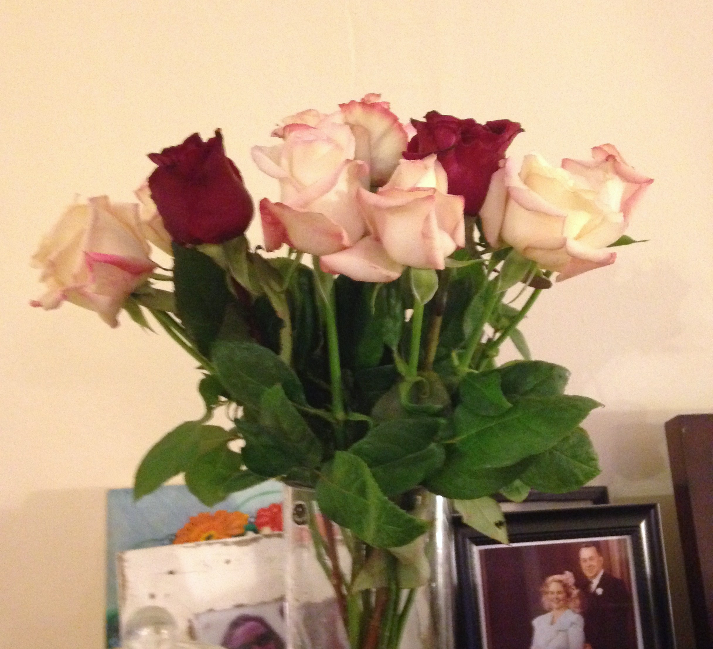 The blush burgundy. The rusted rufescent leaf edges. Her name meant red. They are my seasonal reminder. It’s the month of red. May. Our miserable month of anniversaries. We say nothing again, but he brings me flowers. Two red roses among the white. It’s a gesture that he hasn’t forgotten. It’s been 2 whole years.